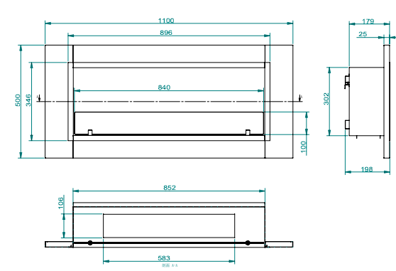 El Panorama está concebido para ser empotrado en la pared o mueble, de manera tal que el marco perimetral de acero inoxidable haga de terminación y apoye sobre el frente de pared/mueble. Viene con una pared posterior y techo de manera tal que la pared puede ser de material o construcción en seco (yeso de placas ignífugas), y el mueble puede ser de madera (no se necesita aislación adicional). Para instalarlo es necesario hacer un calado menor a la medida del frente. Hay que amurar 1 sola guia metálica con 3 tornillos incluidos.